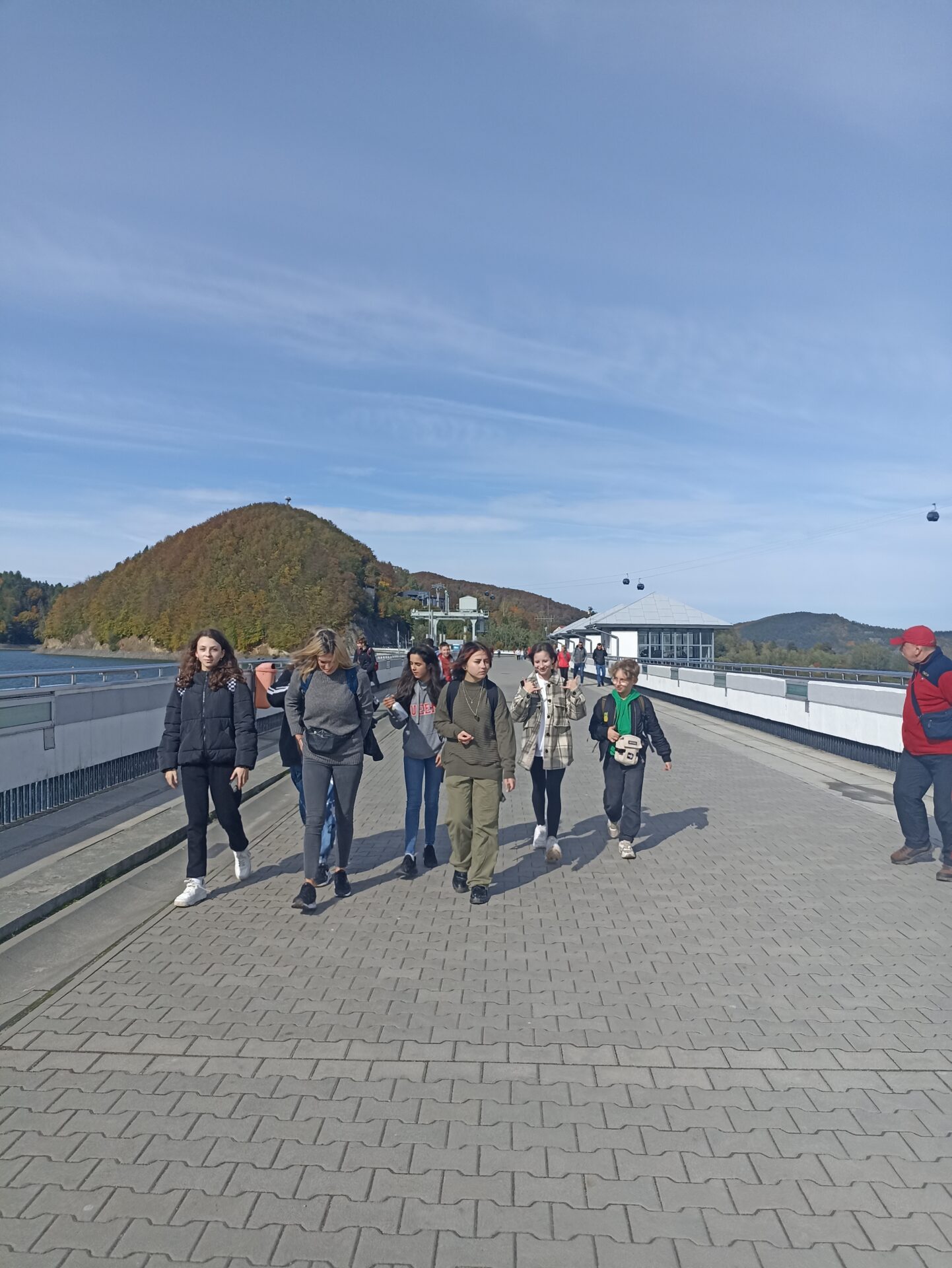 Po zwiedzaniu Zapory czekał nas rejs statkiem po Zalewie Solińskim, podziwialiśmy różnorodną linię brzegową w przepięknych kolorach jesieni. Pogoda nam dopisywała i mogliśmy zażywać kąpieli słonecznej i słuchać historii tego regionu rozbrzmiewającej na przemian z szantami z głośnika statku. Następnie pojechaliśmy kolejką gondolową i z lotu ptaka ukazała nam się w całej krasie korona Zapory, a potem zjedliśmy przepyszny obiad w restauracji na wzgórzu Jawor. Po obiedzie odważniejsi wyjechali na punkt widokowy wznoszący się na 50 metrowej wieży.